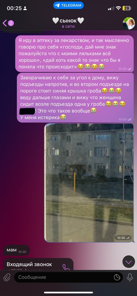 вышла в магазин проветриться, иду обратно и так про себя говорю «господи, пожалуйста, дай знак, всё плохо или хорошо…😔, поворачиваю за угол своего дома (многоэтажки) захожу во двор, на против у подъезда стоит крышка гроба😔, только вынесли соседа, умер. приложу фото.