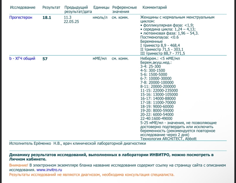 В общем, 1 числа узнала о беременности по тесту. 2 числа поехала сдавать ХГЧ- пришел 24,9. Через 48 часов сдала в той же лаборатории, пришел 62,9. Решила сдать еще на прогестерон, результат пришел 18,1 нМоль ( это получается 36 ДЦ был). Была на узи на 22 ДЦ не было ни фолликула, ни желтого тела, предполагаю что в это время и произошла овуляция, поэтому не увидели….. Сдавала на 23 ДЦ прогестерон, был 11,3 нМоль. С первого дня как узнала о беременности начала пить дюфастон по 1 таблетки каждые 12 часов. Очень переживаю, что такой маленький прогестерон, нужно бежать к врачу? Что в таком случае делать?