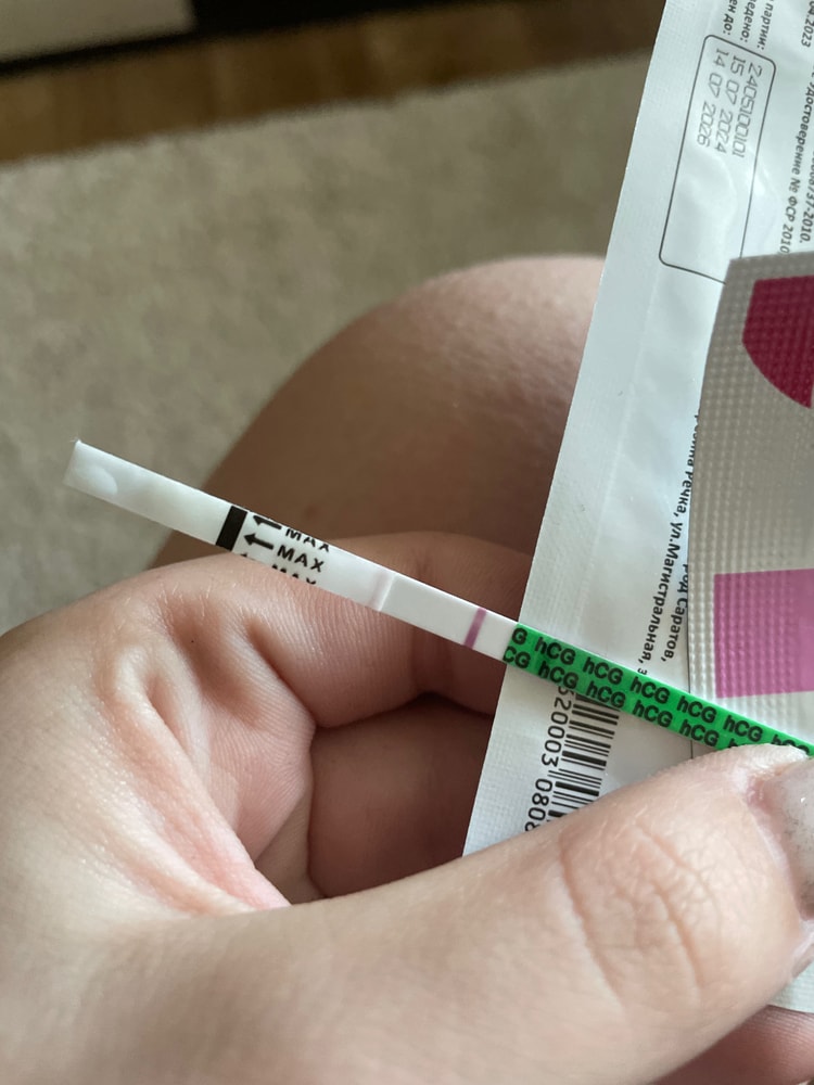 "Под упаковкой" это не полоска, это не до конца высохший тест. Вторая должна быть на белом поле рядом с контрольной, так что у вас отрицательный пока.