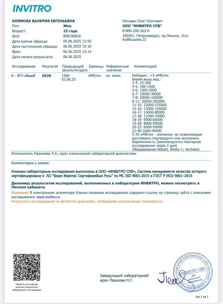 Марина, у моей подружки тоже хгч очень сильно вырос , думала что раньше овуляция была , или она забеременела месяцем раньше и менструация шла через плод первый месяц. Пошли с ней на узи, она вышла и ошарашила меня. У нее оказалась двойня 😊может и здесь будет такой вариант 🤔 🤗
