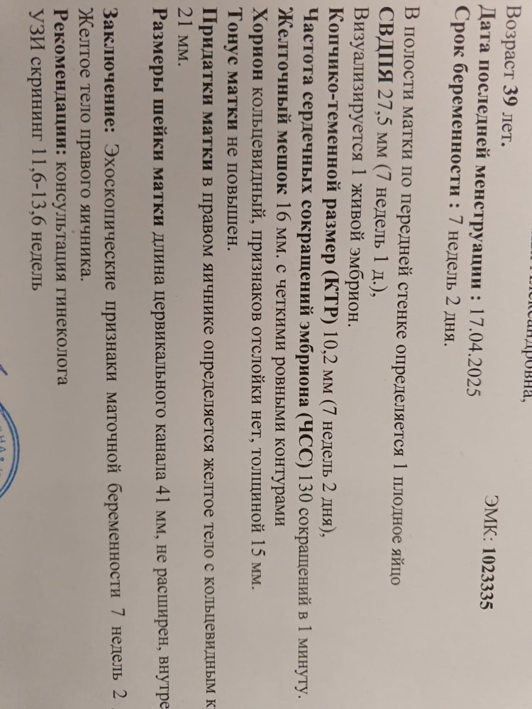 У меня на 8 неделе беременности желточный мешочек 7 мм, беременность замерла.