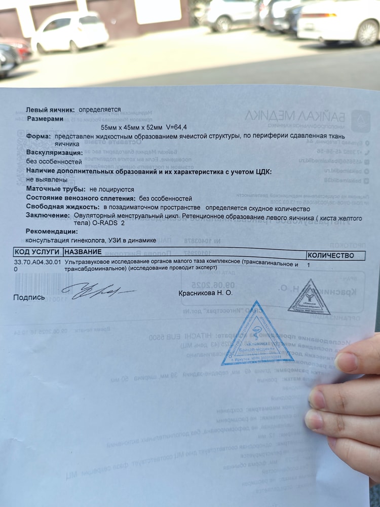 Неделю назад делала УЗИ и овуляции не было. Сегодня пошла ещё раз, так как месячные не начинаются и врач сказал что была хорошая овуляция, правда образовалась киста жёлтого тела, есть небольшое количество свободной жидкости.