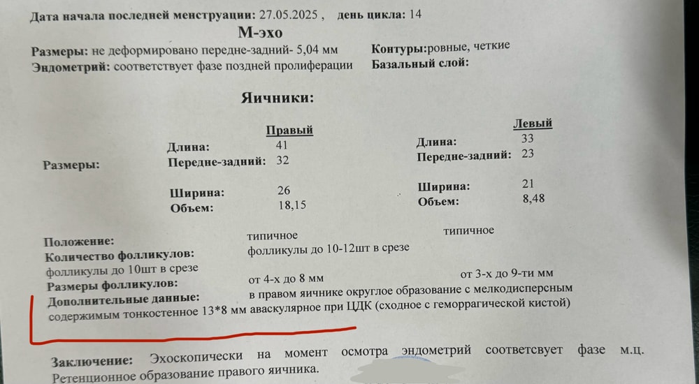 Alinka , снимок приложила в соседний комментарий. До этого особо за кистами не следила, были когда-то функциональные, но мы тогда ещё не пытались забеременеть и поэтому я не обращала на них внимание.