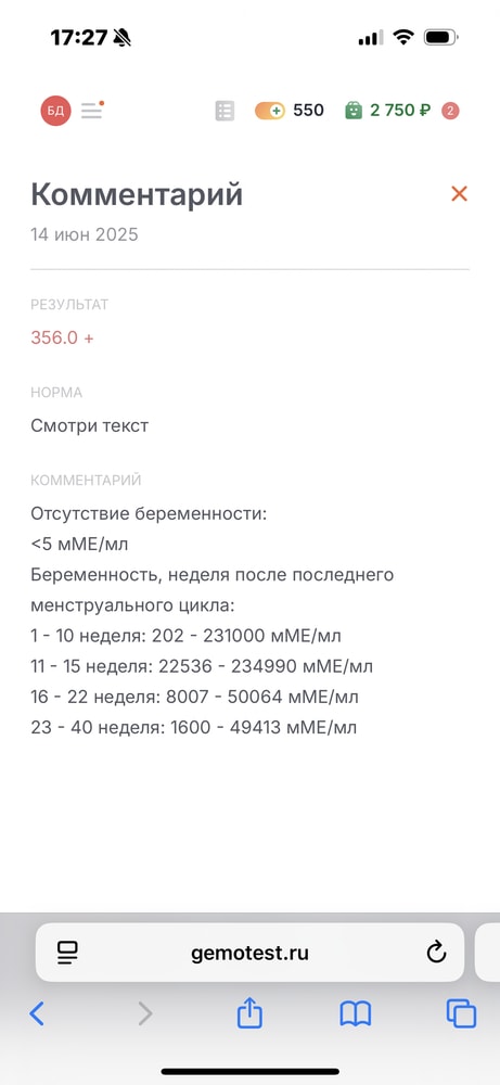 пишу надо истории, 17 мая тест показал слабую розовую полоску(1 день задержки). (23 мая)Через 6 дней у меня пошла кровь. (30мая)На 7 день сделала узи, сказали что ничего нет. Но вчера заметила что меня часто мутит и грудь бидончиком налита😅 сделала тест, оказалась красная полоска (ПА был с предохранением). (14 июня) Сегодня сдала кровь на хгч и результат 356.