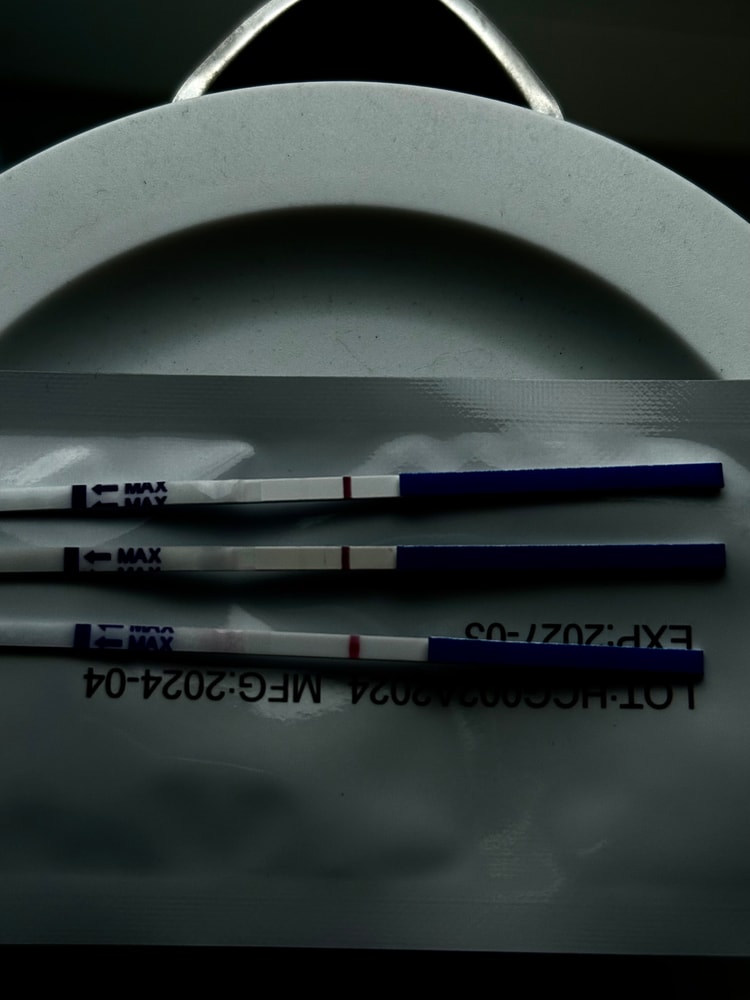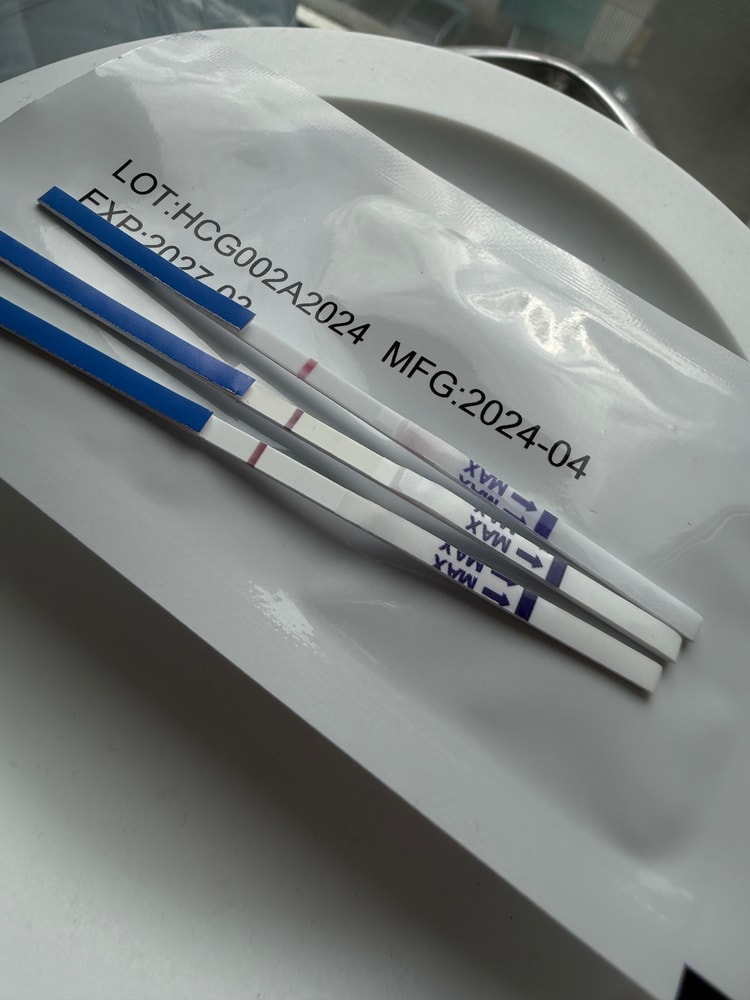 Как думаете, реагент или что-то проклевывается. Полоски появились практически сразу, после высыхания их видно, но камера плохо передает. Сделала два на разную мочу и один на воду. Одно фото затемнила специально, так как качество сайт съест.