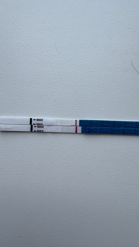 но тут нашла дома тест решила сделать и вот такие результаты, в живую полоска ярче , чем на фото, я в недоумении, что и думать