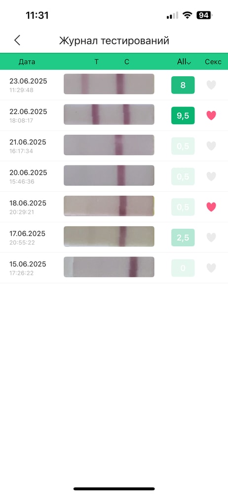 Евгения , сегодня 24.06 сделала тест повторно, все уже блеклые полосочки, значит один день был всплеск ЛГ, У вас как? Фото динамики прикладываю