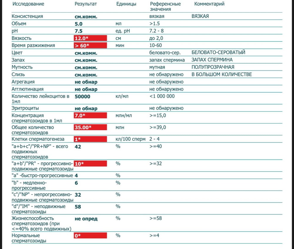 сг /анализы/ обследования для мужчинДевочки. Всем добрый день! Муж спустя 5 месяцев пересдал Спермограмму, результаты такие. Диагноз поставили Олигоастенотератозооспермия. Нам по 24 года, подскажите пожалуйста, есть ли шанс на ЕБ? Или лучше не терять время и на ЭКО?