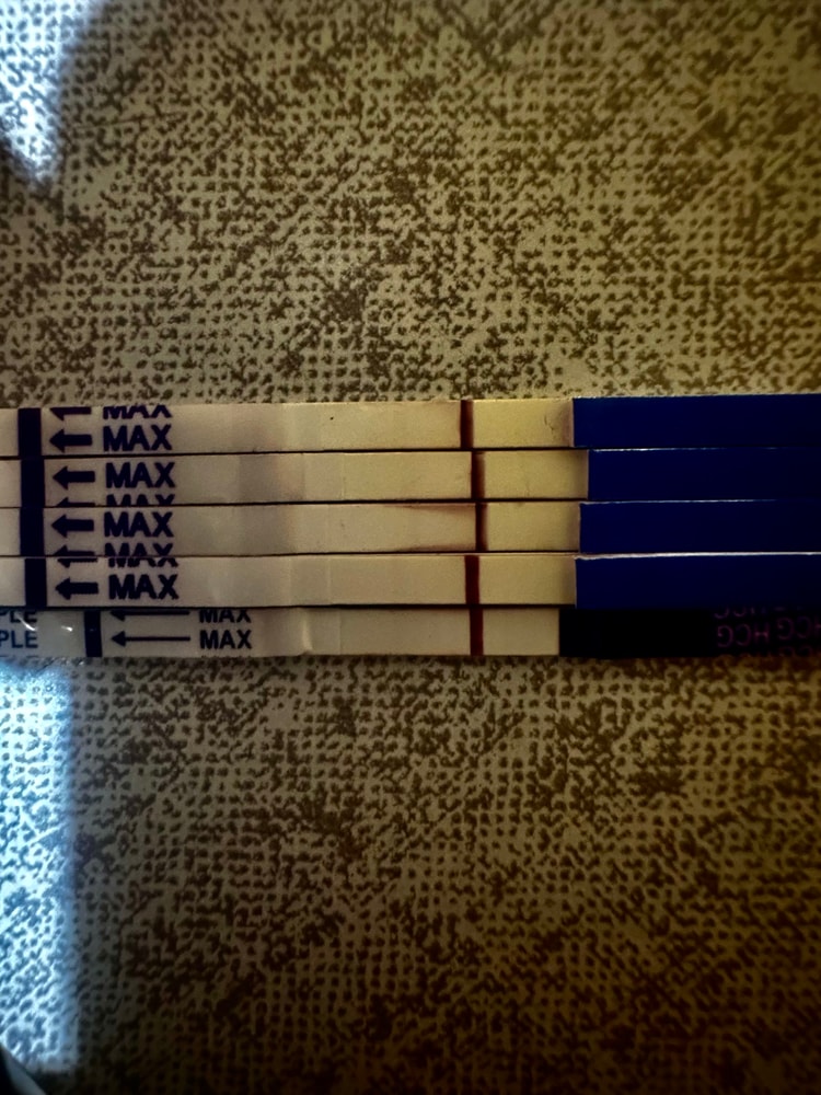 Ждем дня Х (Признаки беременности / Тесты)Здравствуйте,9 июня кончились месячные,10-11 был не защищеный ПА,15 овуляция была по тесту,сегодня 9Дпо ,сделала вчера тест и там вторая слабая полоска,на всех 6 тестах,другие тесты чистые,может ли на всех 6 быть реагент?тесты одной фирмы ,полоски появляются сразу.