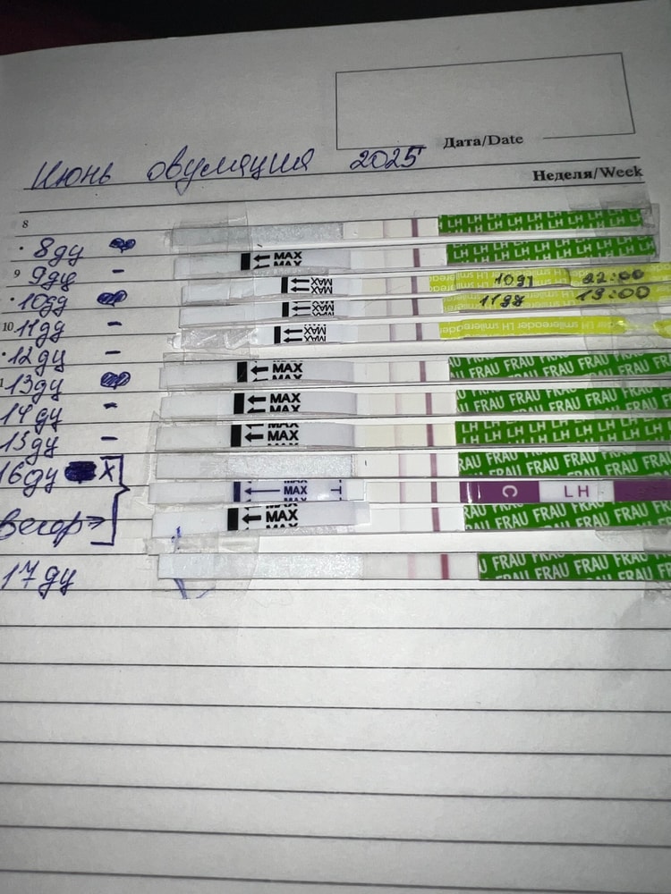 И ещё тоже когда тоже искала информацию про тесты, то увидела, что у одной из девочек на форуме пик был всего 6 часов, потом снова полоска стала бледная. Я начиная с 14 Дц делала уже по 2 теста в день, чтобы не пропустить пик, в итоге поймала на 16 дц
