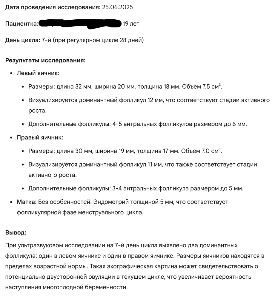 Про две яйцеклетки говорят только когда есть 2 желтых тела. У вас еще доминантные совсем маленькие, я вам больше скажу, у меня с таким размером фолликул два раза был ановулярный цикл) поэтому сходите еа фолликулометрию дней через 5