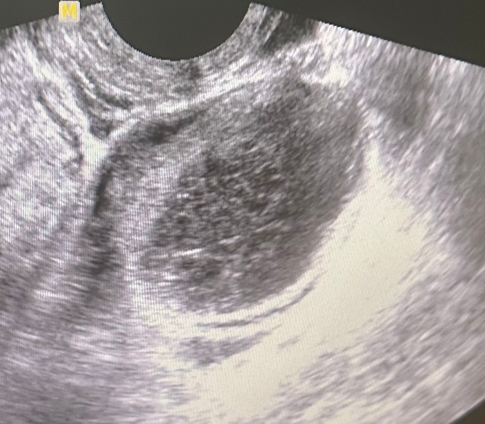 Я не эксперт абсолютно, но как будто киста ЖТ, так как по серединке есть тоненькая полосочка, как кровоток)