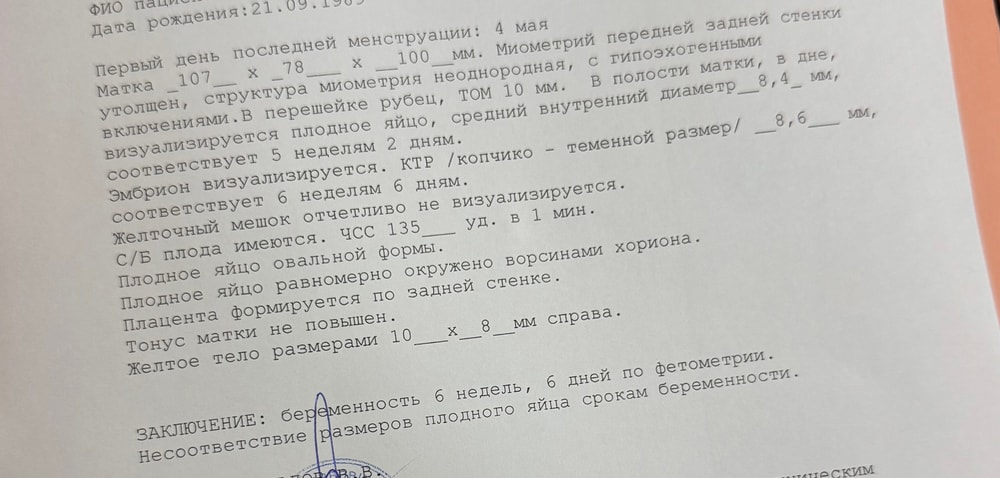 AFINA , к сожалению да,пя маленькое и эмбрион с размером пя,ему развиваться некуда уже,у вас в заключении написано не про жёлтое тело,а про несоответствие размеров плодного яйца,оно у вас маленькое и это плохо