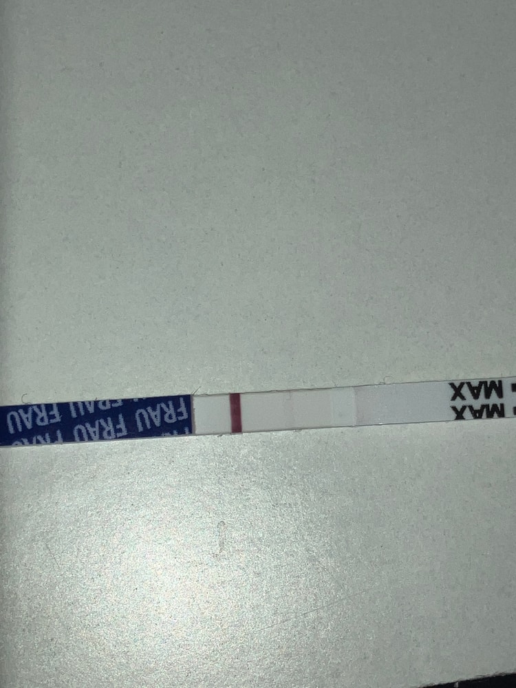 Тест фрау, double control, вроде как за 4 дня задержки показывает заявлен. У меня 10дпо, до месячных 5 дней. Не удержалась, сделала вечером и тут такая полосочка появилась в течение пары минут. Фото теста уже после высыхания, при тестировании было также, стала чуть ярче как высох, розовенькая. Подскажите пожалуйста