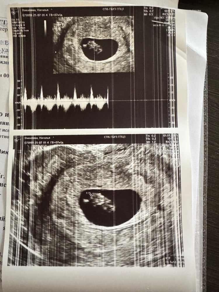 Год назад у меня была анэмбриония, поэтому тревожность – мое второе имя. Я обещала себе дотерпеть хотя бы до 6 недель, прежде чем идти на УЗИ. Но на 22ДПО пришел результат ХГЧ – 10000. Моя тревожность решила, что это слишком много, и я сорвалась на УЗИ в сроке 5+2. Тогда увидели плодное яйцо, желточный мешок и крошечную точку-эмбрион. Врач посоветовала прийти через неделю.