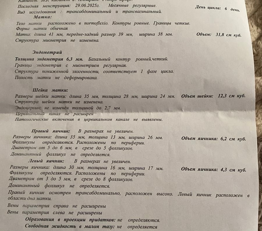 Я сделала УЗИ на 6 д.ц. Отклонений никаких нет. Полипы/кисты/миомы/СПКЯ/энодометриоза - нет, и слава богу 😅
