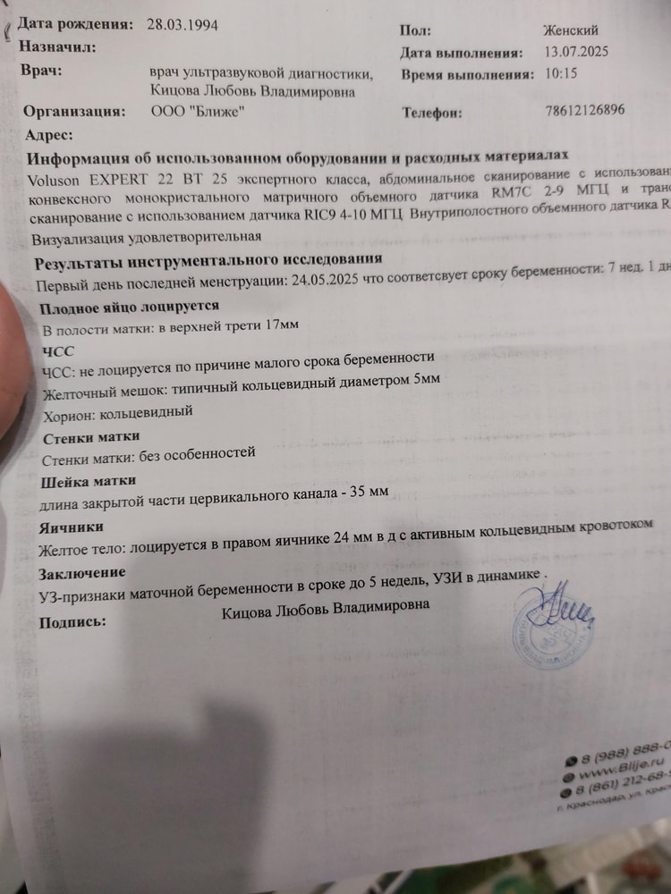 30.06 по УЗИ потвердили маточную беременность , плодное яйцо 4мм, эмбриона не увидели