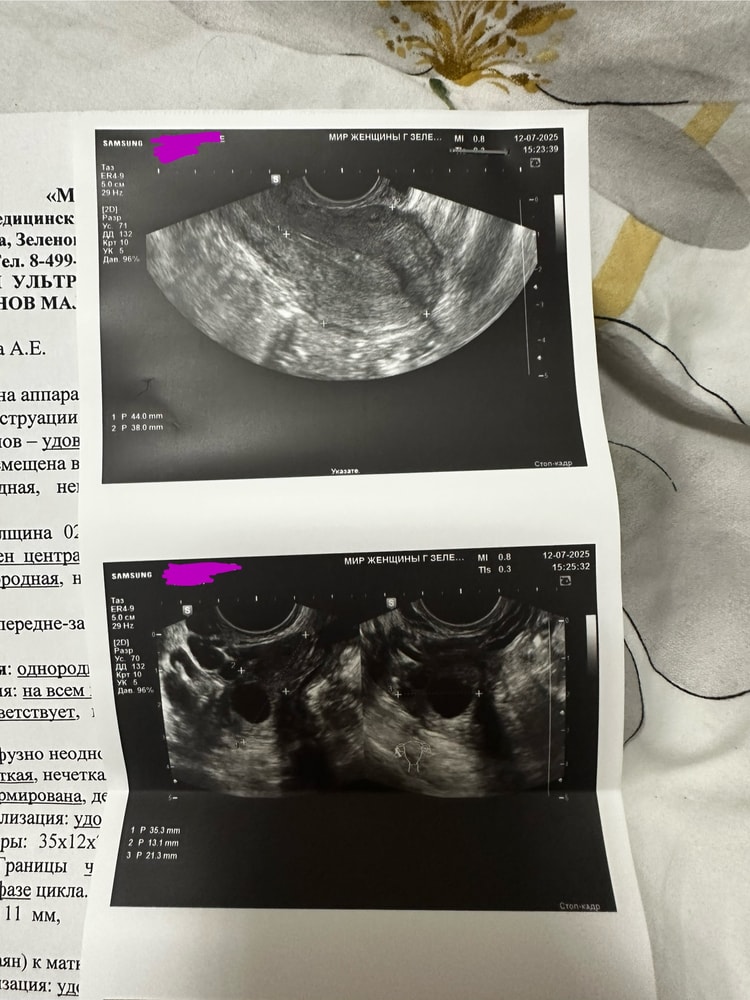 Пошла к гинекологу на 6дц, говорит сбой, но хгч сдаем на всякий, делаем сразу узи (тк в вс у меня был вылет в отпуск и я пошла получить добро на вылет). По узи картина начала цикла. Желтого тела нет, фолликулы и все, доминантного пока нет. В тот же день пересмотрела узи ещё у одного очень толкового врача на хорошем аппарате (фотку узи прикладываю). Все дало добро на вылет, мол начало цикла, беременность маловероятна.