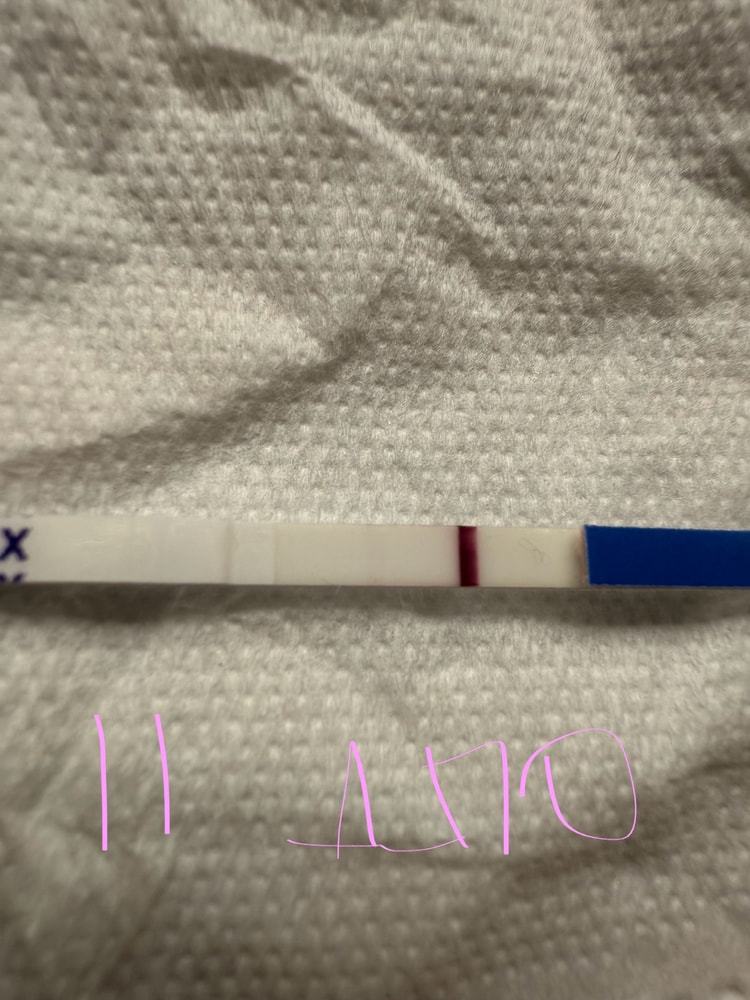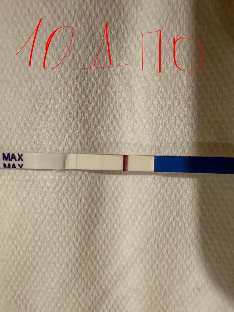 для сравнения оставлю вчерашнего вечера тест. Из наблюдений, вчерашнему тесту понадобилось больше времени чтобы выдать такую полоску, сегодня она проявилась практически сразу. Живот тянет сильно, думала уже что начались М, но потихоньку как то само успокаивается, грудь никак не реагирует, обычно она очень болезненная у меня, а тут тишина.