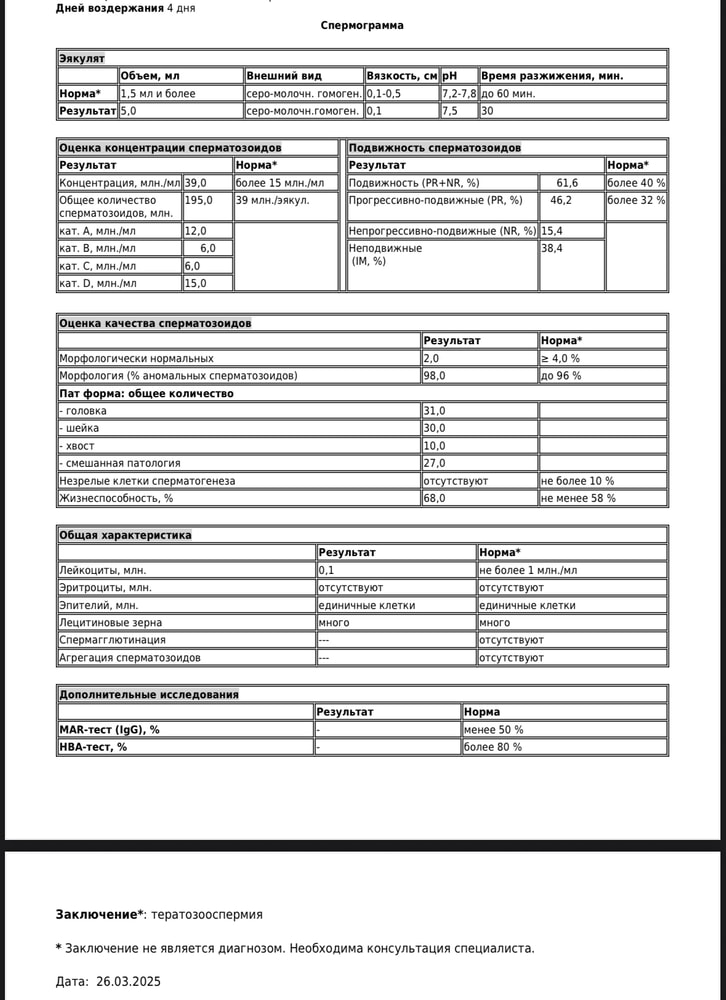 Катерина, потому что с 3% морфологии его назначил репродуктолог. Мужу вот пришел - все нормально, морфология не является генетической, просто так сложилось