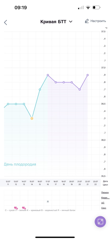 Ждем дня Х (Признаки беременности / Тесты)Привет девочки, кто разбирается в графиках и может подсказать, есть ли шансы с такой бт?