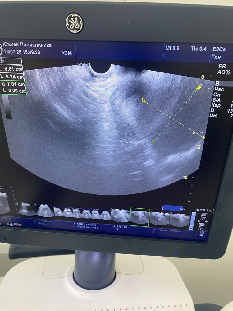 Гинекологические заболеванияНачну с того, что делала фолликулометрию и на 13 ДЦ фолликул был 1,5 см. Ждала овуляцию, с 16 дц начались какие то боли как при О, но не прошли в тч 1-2 дней. Сегодня на 20ДЦ пошла на узи, нашли какую то кисту, вроде с перегородками она сказала. Или с чем то на букву «П». Могу путать. Размер 4.5 см. Желтого тела нет, фолликула моего того тоже нет. Откуда эта киста взялась если её не было неделю назад? Заключения нет, есть фото. Девочки кто разбирается, посмотрите пожалуйста 🙏🏻