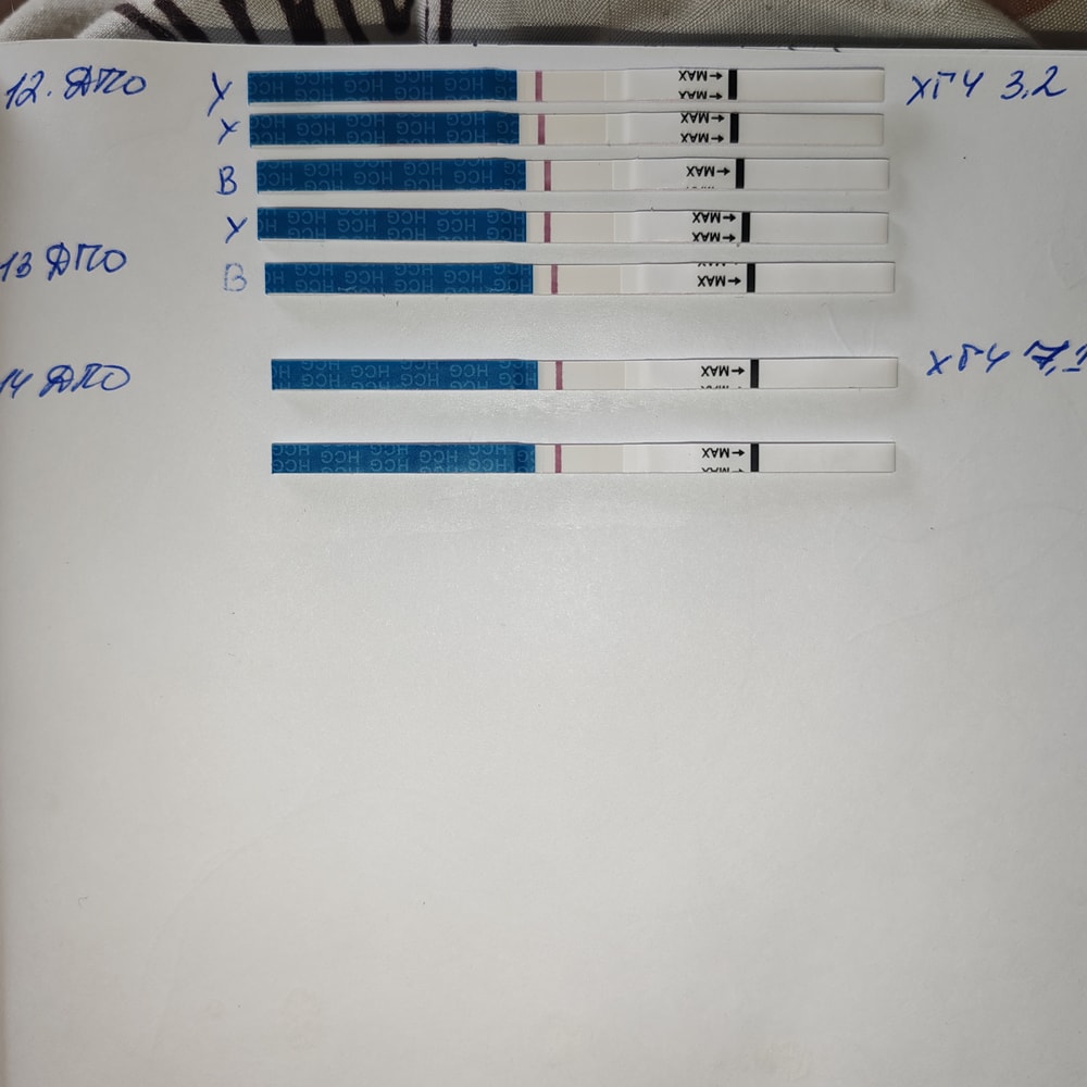 Тут после 12 пришел результат хгч - 3,2. И это за сутки. Я выдержала еще два дня, параллельно делая тесты. И вот я сдаю хгч ещё раз) результат - 7. Он удваивается!!! Счастлива безумно, пусть это и шатко пока, но я верю, что мой малыш останется со мной 🫰🤞всем ярких полосочек 🤗🤗🤗