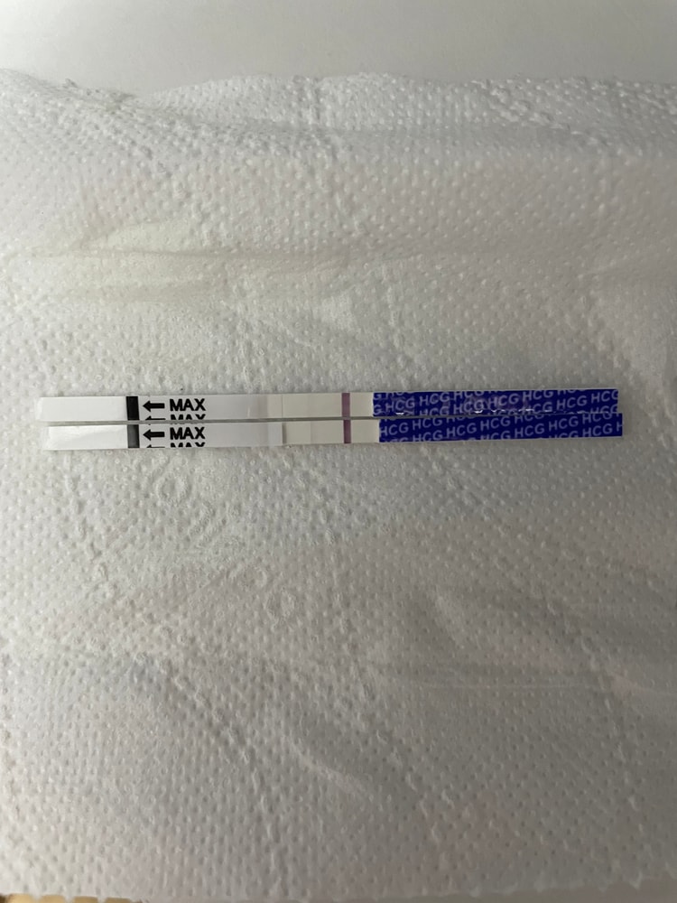 Цикл 26 дн, не обращала внимание на задержку, уже неделя. Сделала тест позавчера (верхний), сегодня (нижний). Hometest