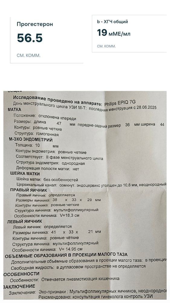 Не поверя своим глазам, сдаю прогестерон на 24 дц, а там значение нифига себе положительное: 56,5. Делаю вывод что узистка так себе и живу дальше.