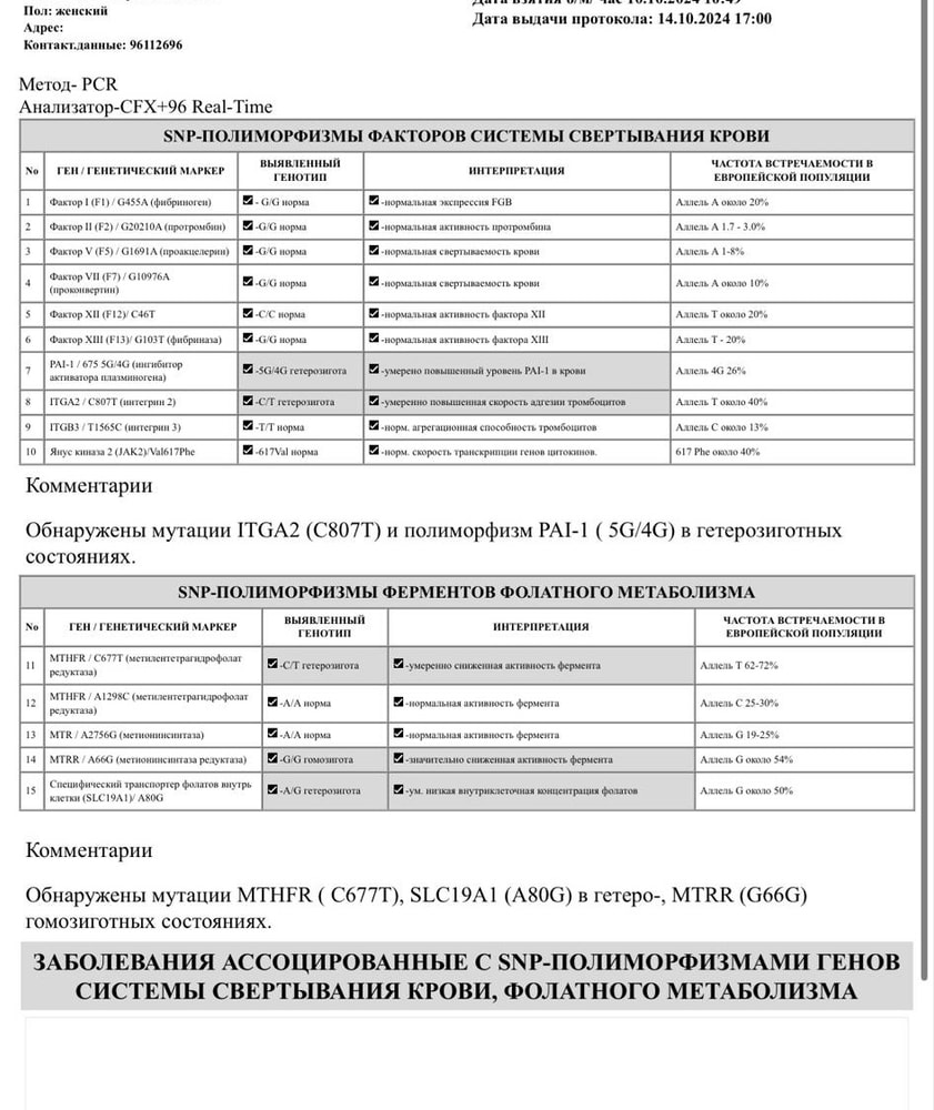 Ваши мутации гемостаза не требуют никакой терапии. У вас две обычные неопасные гетерозиготные мутации. У вас по этим мутациям нет ни рисков тромбозов, ни рисков кровотечений.
