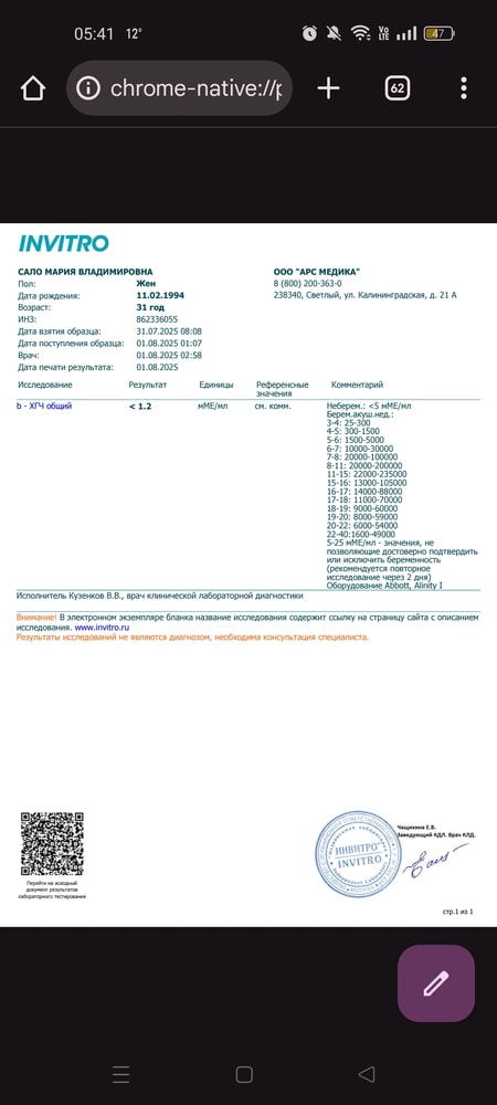 Пришёл результат хгч