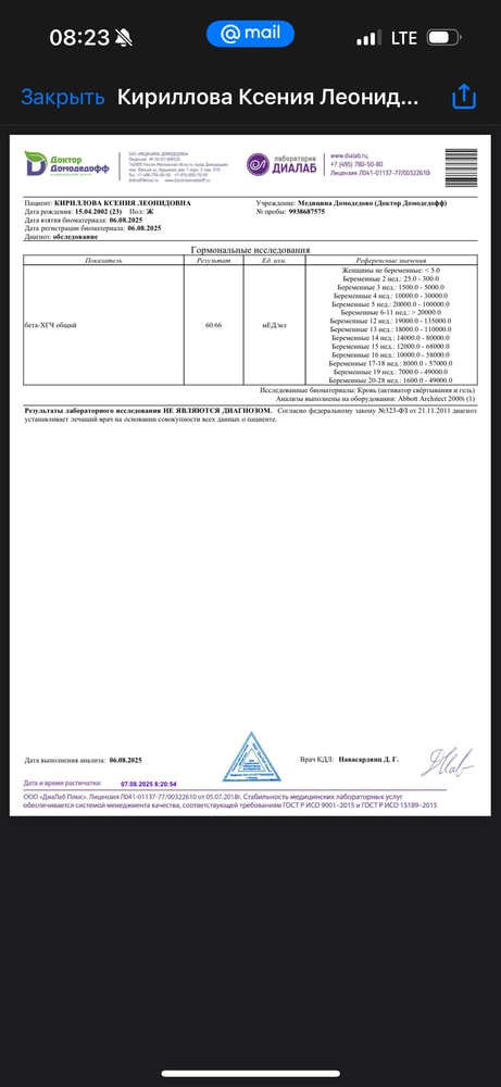 Внематочная беременностьМожет кто сталкивался с подобным? 16 июня вроде как были нормальные месячные,потом после них сильные боли начались в правом яичнике и сильно болел живот + бегаю в туалет по большому раза 2-3 в день. Сходила на узи, сказали либо функциональная киста,либо эндометриозная. Якобы непонятно … сильно воспален яичник и почему-то она увидела там кровоток ( предположила,что может быть киста лопнула) сдала хгч, показало 60.66