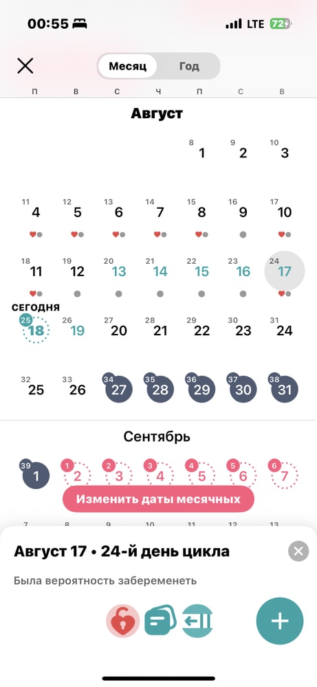 1)Почему у вас 4.08 - 11 день цикла, 5.08 -12 день, и далее такое же соответствие (+7 дней), а 23 и 24.08 почему-то 23 и 24 дни цикла вместо 30 и 31? Или вы не так посчитали, или я чего-то не поняла.