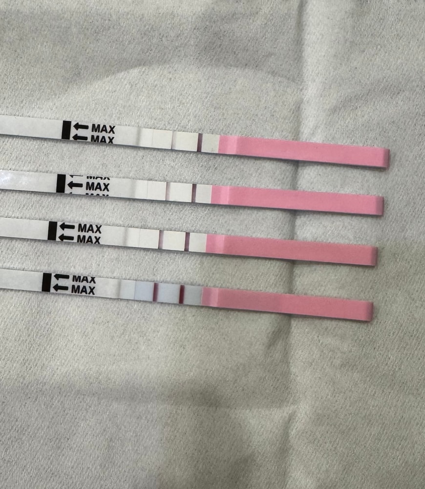 Вчера были бледнее, а вот на фото тесты сегодняшние (утро-день-вечер-ночь) к ночи наконец увидела поярче полоски, как считаете, это пик?