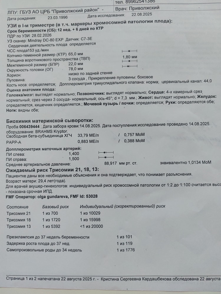Все хорошо. Но ПАПП низковат из за этого риск ПЭ высоковат, вы уже были у гениколога своего? Обратите ее внимание что у вас достаточно высоковат риск ПЭ до 37 н, пусть выпишет вам кардиомагнил.