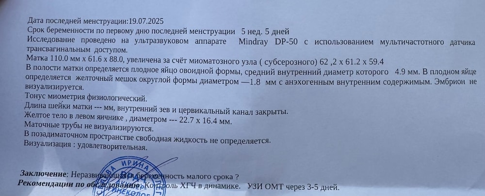 В вашем случае сейчас только динамика узи теперь. Через неделю сходите) Желаю, чтобы в вашем случае всё закончилось хорошо 🙏❤️