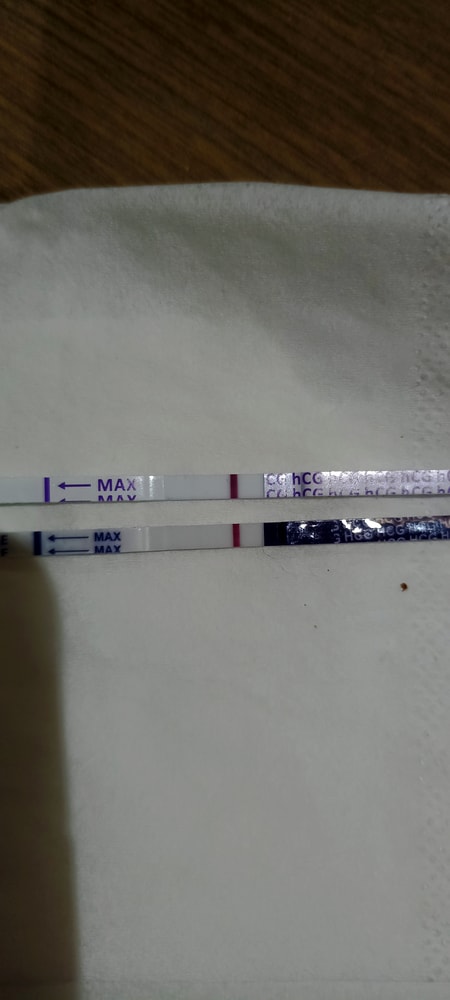 Ждем дня Х (Признаки беременности / Тесты)Девчата сижу в раздумьях... Беременность в этом цикле не ждала, по узи эндометрий был 4,7,и Дюфастон не пила,хотя врач сказала надо принимать, теперь виню себя, тесты самые дешёвые веры им особо нет,но всё таки розочка и фелли на обоих видно полосочки, хгч смогу сдать только через два дня. Ничего не случится за два если вдруг действительно беременность получилась без дюфастона? может ошибка в замерах эндометрия, всё же может быть,и беременность всё таки получилась. Куча мыслей, начиталась что если эндометрий тонкий,пя спуститься и будет внематочная. Или это реагенты или бхб ой не знаю что думать,два дня будут длиться вечность,но пока так, посмотрите фото,что скажете?🌺