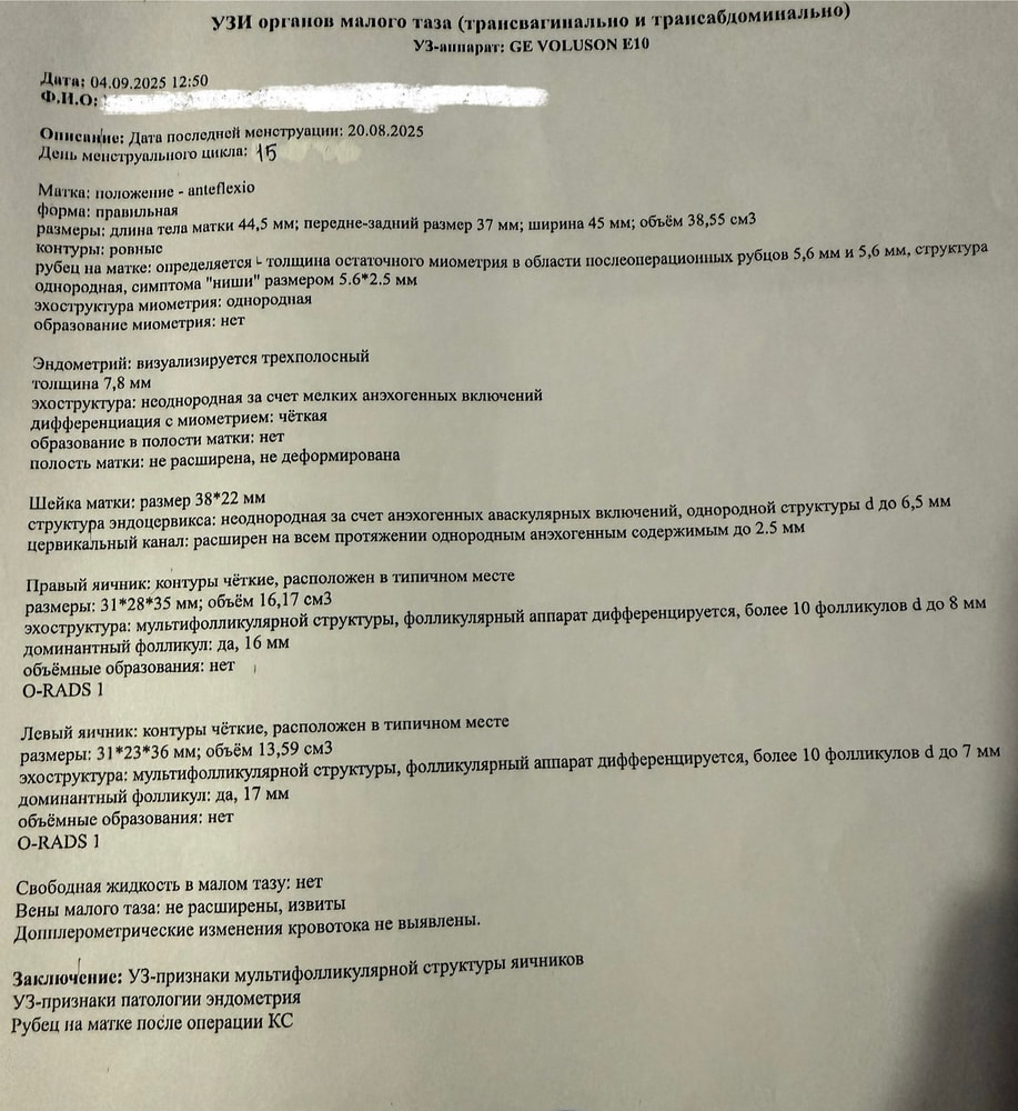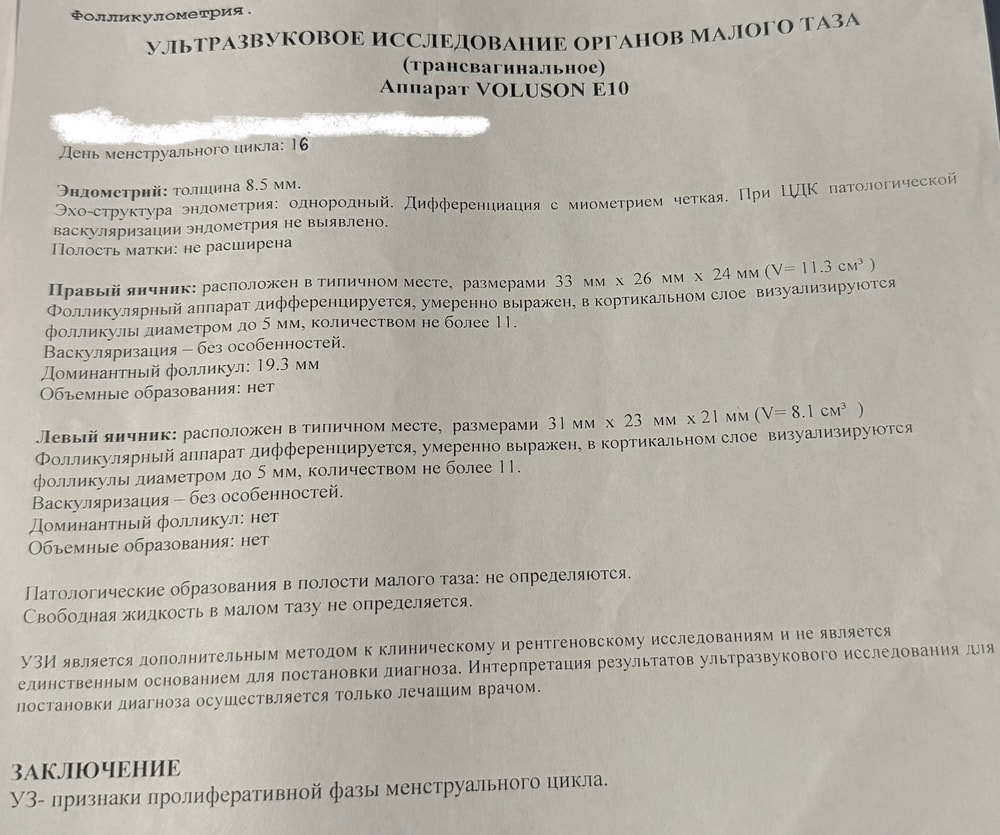 25.08. (5 ДЦ) пошла на узи, т.к. хвост от ХГЧ медленно уходил. Сказали очень тонкий эндометрий, около 2 мм, Фолликулы до 6мм.