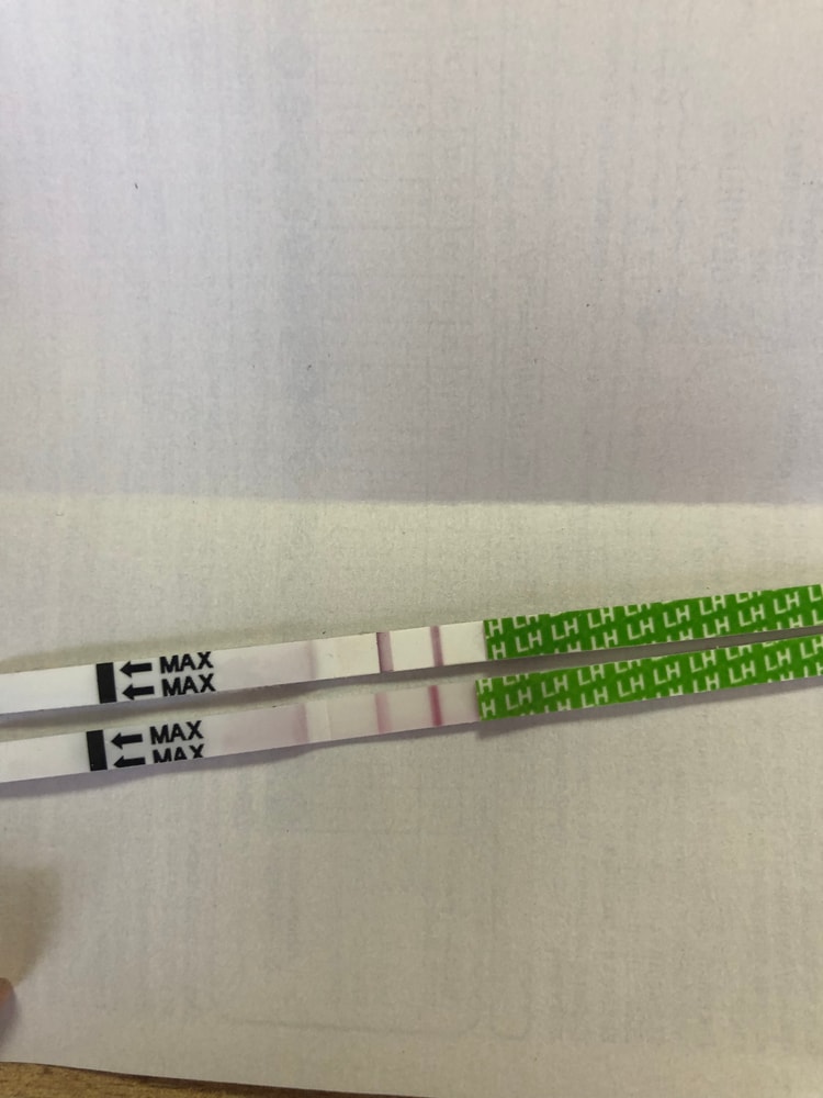 Судя по тестам то на верхнем пик) но если вы делали только 2 теста , то нет гарантии , что пик не начался за день до верхнего , он может и около 2-х суток держаться. По нижнему тесту уже понятно, что овуляция прошла, и скорее всего вчера).