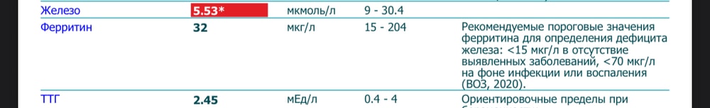 Алиса в Зачатие 3 месяца Железо и Ферритин Анализы Всем привет) может кто подскажет, на сколько все критично? ( планирую беременность) Посмотрите еще 20 записей на эту тему Отменить Ответить Юлиана Я нутрициолог. Железо низкое, Ферритин тоже. Какой гемоглобин? И уровень трансферрина? И общий белок? 13.09.2025 Ответить Алиса Юлиана, гемоглобин 13.1г/дл(реф11.7-15.5) Общ белок 74г/л(реф64-83) Трансферин не сдавала 13.09.2025 Ответить Юлиана Алиса, гемоглобин хороший, белок тоже, теперь желательно к врачу за назначением лекарственной формы железа. 13.09.2025 Ответить Алиса Юлиана, спасибо, врач ответила, назначили тардиферон 13.09.2025 Ответить Linda B Критично. На качестве яйцеклеток это очень сильно сказывается, да и при Б могут быть проблемы. Нужно обязательно поднять хотя бы до 15 железо, а лучше 20-25. 13.09.2025 Ответить Алиса Linda B, спасибо 🙏🏼 13.09.2025 Ответить Динамика хгч АНФ 640, комплемент С3 понижен, антитела к PCNA пограничные Чаты Беременных Выберите чат: Январята-2026 Февралята-2026 Мартята-2026 Апрелята-2026 Майчата-2026 Июнята-2026 Июлята-2026 Августята-2026