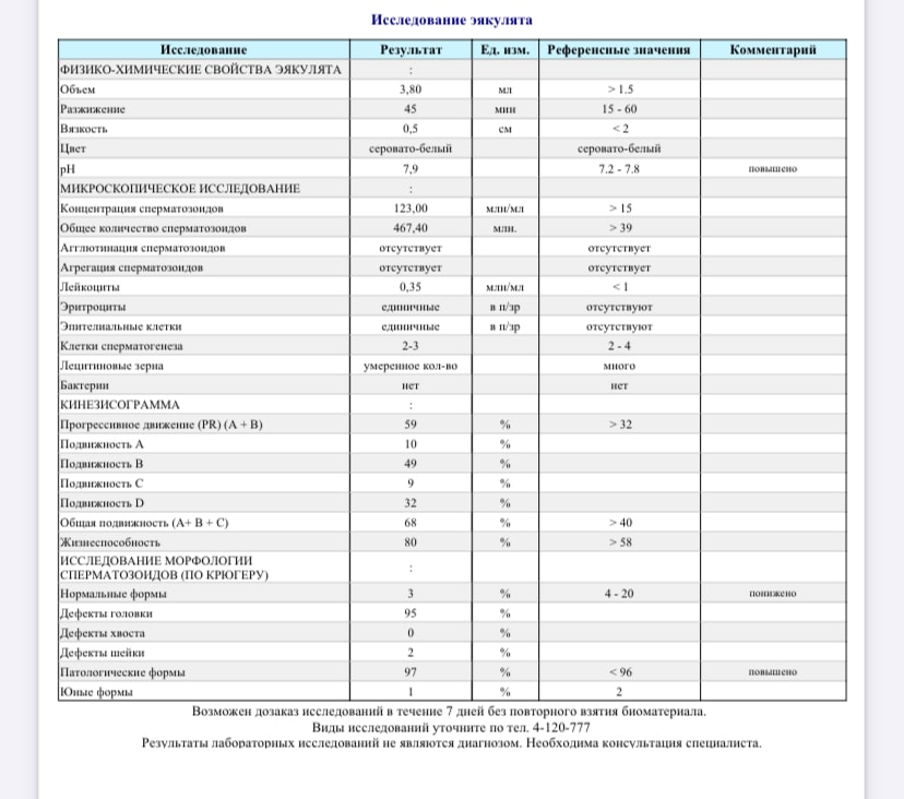 Кокосова, нет почему-то заключения на самом листке с анализами 🤷🏻♀️ но врач с которым консультировались ставит тератозооспермию