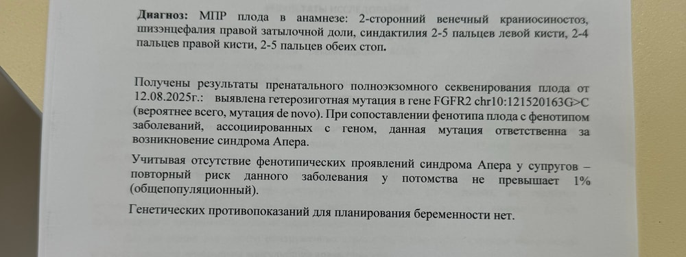 Показаний к сдаче точечного анализа на этот ген для нас с мужем нет