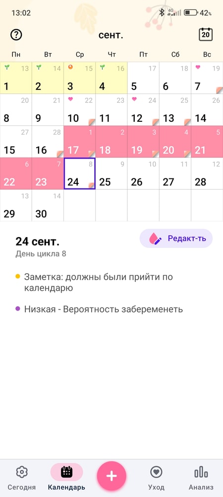 У меня в этом месяце должны были прийти месячные 24 числа, 6.09, 10.06 и 12.09 был незащищённый ПА, можно сказать сами захотели😊 как раз в эти дни календарик показывал овуляцию. Так вот, а месячные пришли на неделю раньше 17 числа и очень болезненные (естественно календарик передвинул овуляцию, 16 числа ужасно болела поясница и живот, а когда пришли болело как обычно, и до сих пор у меня ноет низ живота и грудь чувствительная такая (4 день цикла) не было так никогда