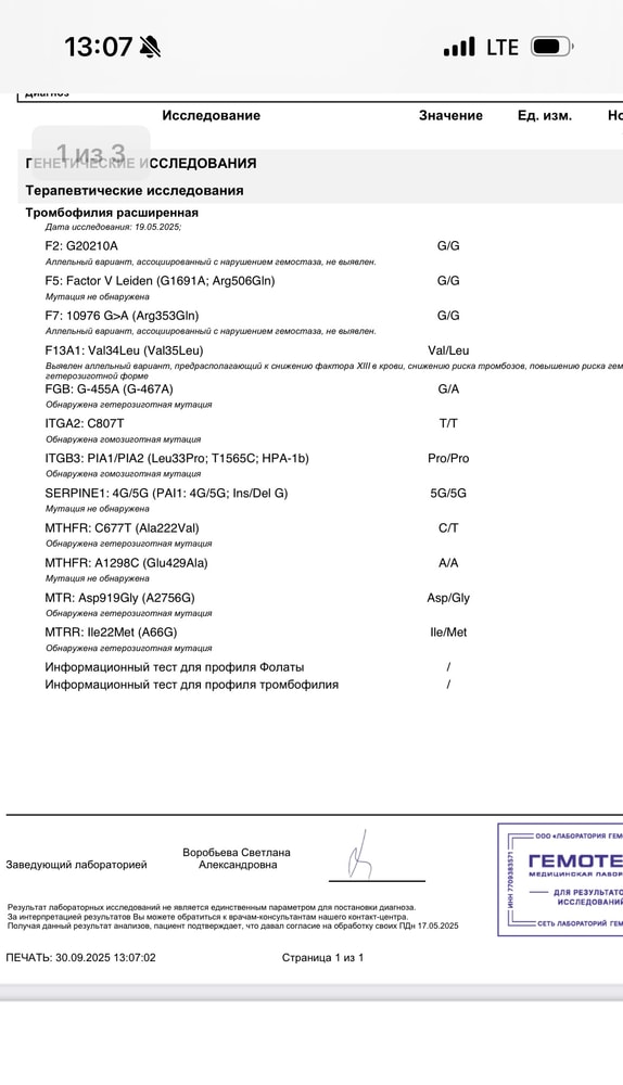 По генетике у вас гетерозиготная мутация по фактору 13, это риски кровотечений. Возможно, большой дефицит фактора 13 в крови? Нужно узнавать у хороших гематолога.