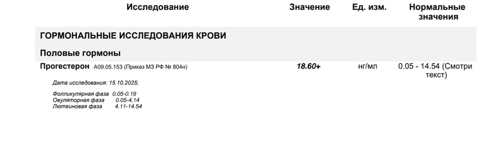АнализыДобрый день! Кто-нибудь сдавал прогестерон в гемотесте? Пришёл очень странный результат (картинка ниже). Что значит этот плюсик?)) Ед. Измерения нг/мл, поэтому уровень я так понимаю нормальный.