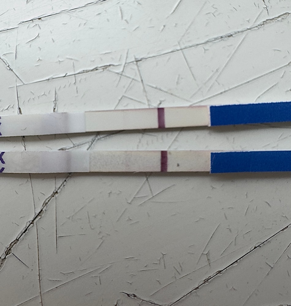 Ждем дня Х (Признаки беременности / Тесты)Девочки, всем привет. У меня такая ситуация, до дня Х ещё 5 дней. Овуляция по моим ощущениям была 7 числа (15 дц), цикл 30 дней без сбоев. ПА с мужем был 6 и 8 числа. Пытаемся зачать второго ребеночка 3 года уже. Вчера сделала тест на беременность с чувствительностью 10 мМе/мл, он показал вторую бледную полоску, но когда высох видно при определенным углом. Сегодня сделала ещё два теста, на 25 мМе/мл. На 7-8 ДПО тянуло низ живота, грудь болела не сильно и увеличилась а на 24 дц начала ужасно болеть. Кто с таким сталкивался? Б подтвердилась?