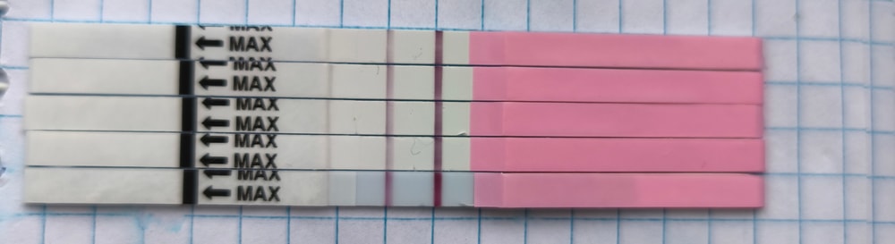 В середине цикла я делала тесты 2-3 раза в день, пик мог быть в обед а вечером уже бледноваты как утром, например