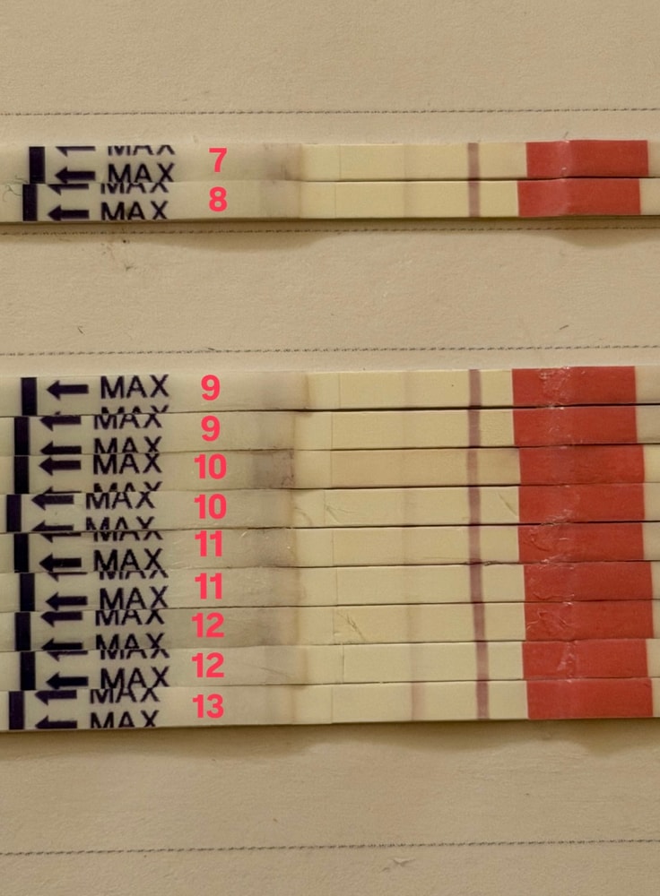 Начинала делать с самого первого «чистого» дня и вот на 13 дц вижу самую яркую полоску (по сравнению с теми, которые были до)