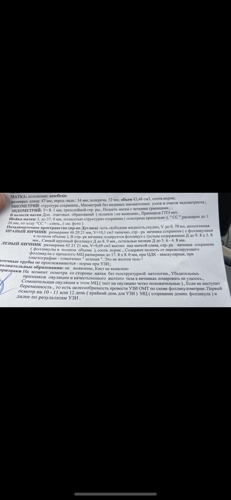Всем привет . Вчера радостно делилась , что овуляционные тесты в «Пике» сегодня пошла на фолликулометрию -говорят , что нет овуляции . Это как понимать ?(((очень расстроилась . Вот узи прикладываю . К врачу на следующей неделе, подскажите , как так возможно ?