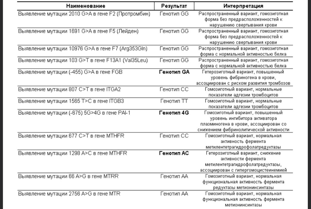 Кристина в Зачатие месяц Полиморфизмы генов Анализы Доброго времени суток!Кто разбирается, посмотрите, пожалуйста, такой результат влияет на возможность беременности? Анализы крови на гормоны и что касается свертывоемости, времени в норме Посмотрите еще 20 записей на эту тему Отменить Ответить Irina Ro На зачатие не влияет, на вынашивание может влиять, у меня паи в гомо вынашиваю на клексане и аспирине. 28.10.2025 Ответить Кристина Irina Ro, у вас такие же показатели, как у меня? 28.10.2025 Ответить Irina Ro Кристина, не совсем, у меня паи в гомо как у вас и итг в гетеро. В моем случае паи давали зб поэтому терапия назначена гематологом 28.10.2025 Ответить Кристина Irina Ro, подскажите, пожалуйста, паи это который из показателей на скрине? 28.10.2025 Ответить Irina Ro Кристина, да, у вас паи в гомозиготе и фибриноген в гетерозиготе 28.10.2025 Ответить Кристина Irina Ro, спасибо, вы помогли мне задуматься. Возможно, дело было не в муже, когда были бхб. Будем разбираться теперь 08.11.2025 Ответить Результат ХГЧ Рост ХГЧ (плохо растет) Чаты Беременных Выберите чат: Январята-2026 Февралята-2026 Мартята-2026 Апрелята-2026 Майчата-2026 Июнята-2026 Июлята-2026 Августята-2026